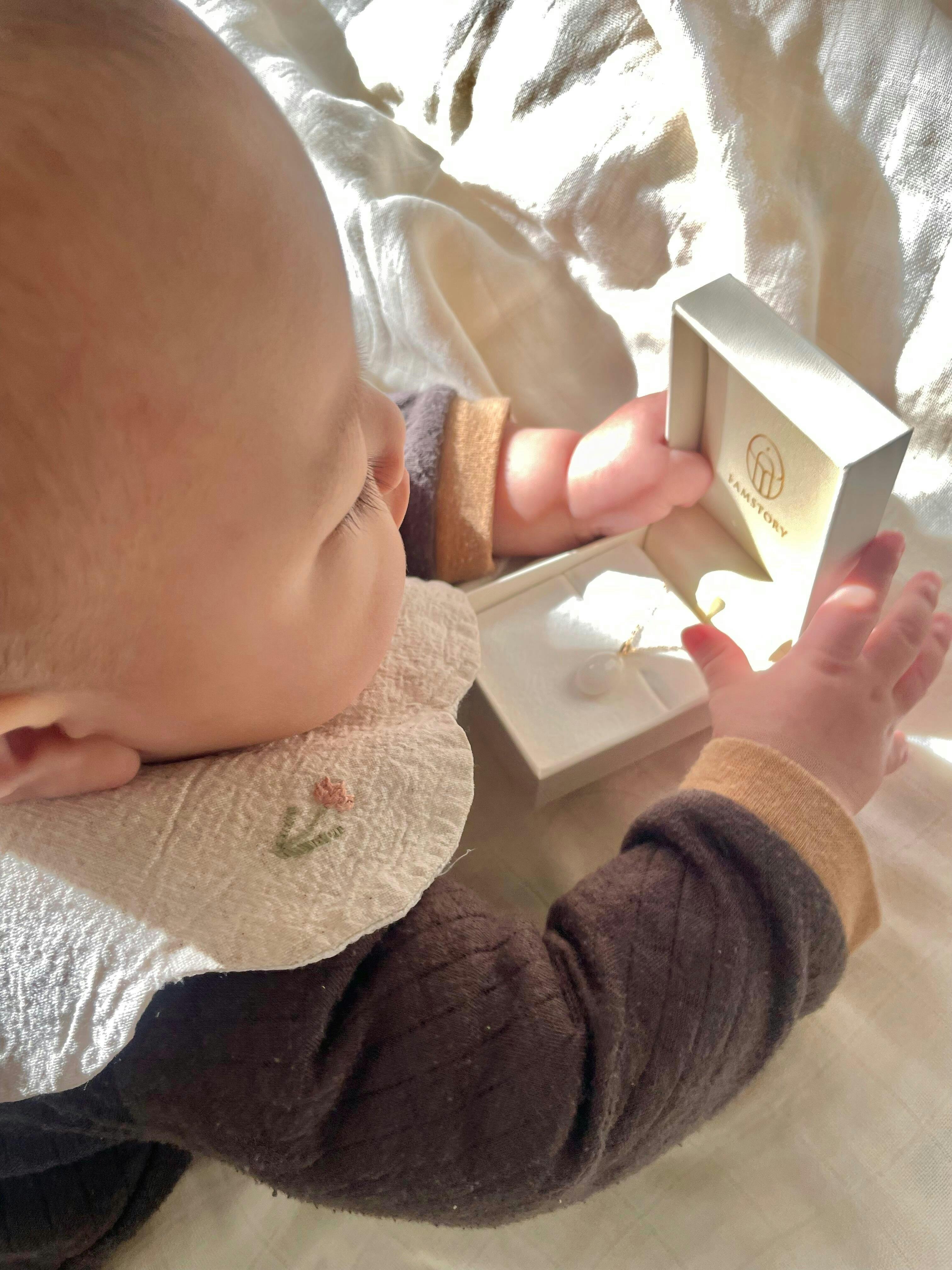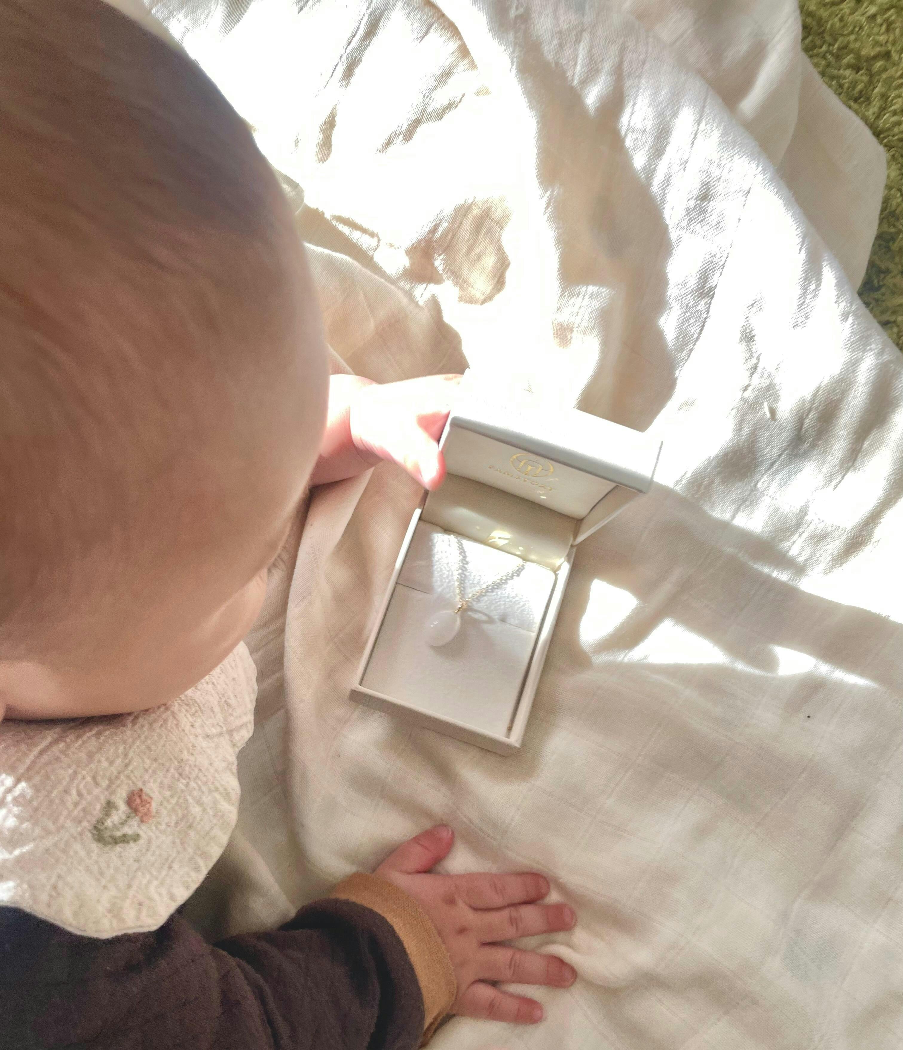 数年後に、みんな反抗期が訪れることも私は知っています。でも、その時にこのジュエリーを手に取り、赤ちゃんの頃を思い出し、お互いに乗り越えられるお守りになることでしょう。