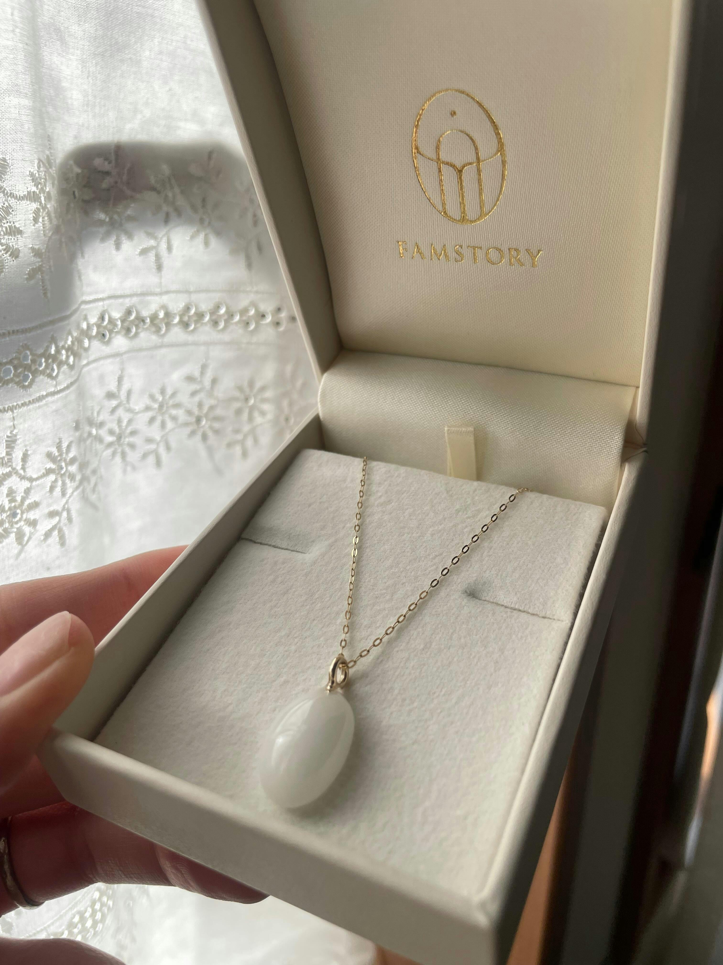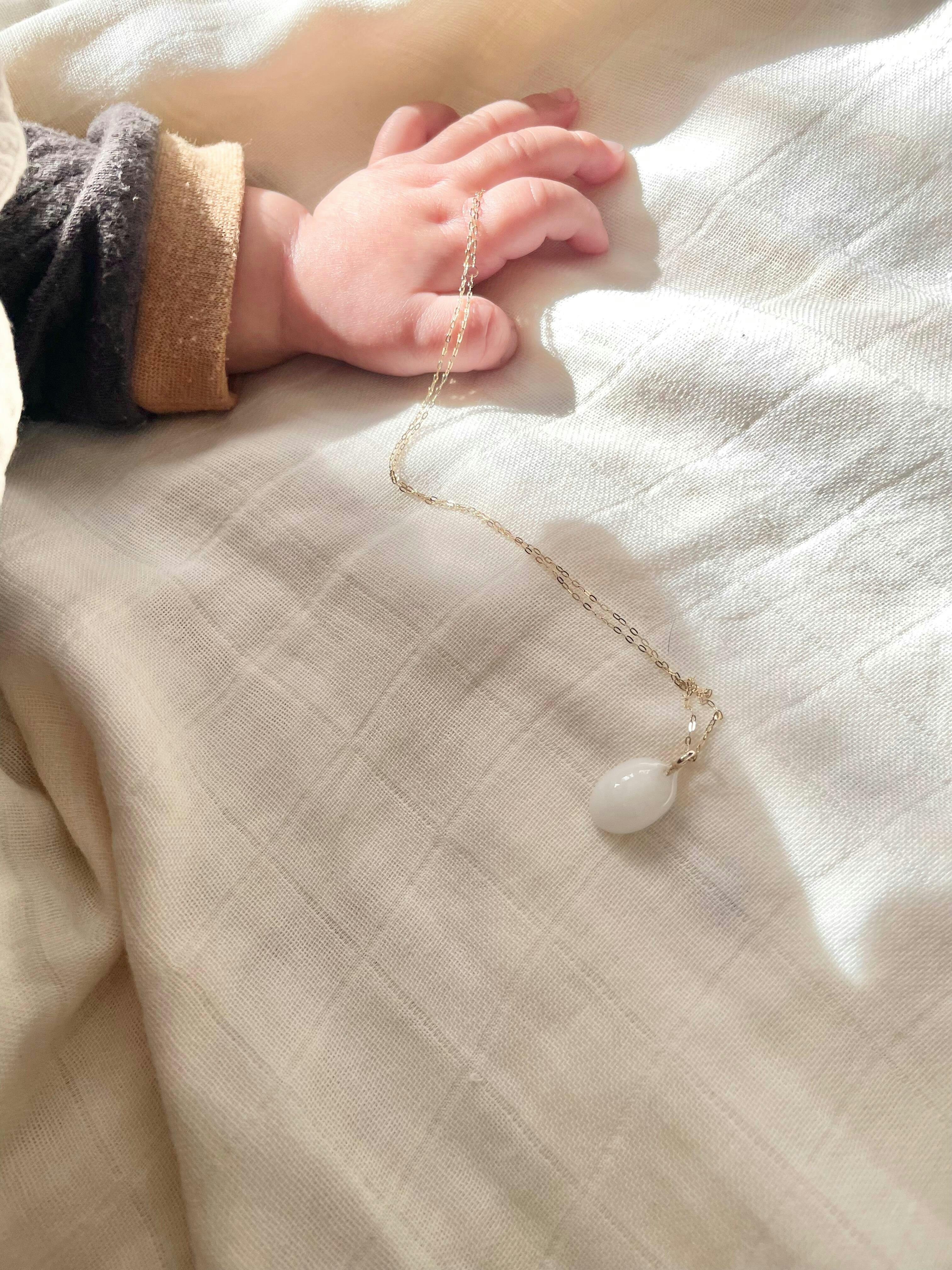 4歳、1歳の母です。購入することになったきっかけは2人目の妊活中にこのストアを発見した事でした。母乳のアクセサリー、初めて聞く言葉で興味を持ちInstagramを拝見しました。作った想い、作る過程を見ていくうちに1人目の時に欲しかったなぁと思ったのと同時に、母乳で育てた事に関して褒められる事もなく、形に残る事もなく、私の記憶にだけ残っている事に気づきました。ありがたいことに母乳が出て、子供も飲んでくれたので当たり前のように母乳で育てられたのですが、私にとって初めての育児で、母乳に関して良い思い出も辛い思い出も同じくらいあり、今まで忘れていた授乳期間の記憶が一気に蘇ってきました。「あぁ母乳ってすごい事だったんだなぁ、尊い時間だったんだなぁ」と思うことができました。それを形に残せるって、素敵以上に昼夜問わず新生児のお世話をして、上手くあげられなくて泣きながら夜中を過ごして、3時間おきにおっぱいをあげて、ちゃんと足りてるのか心配になって、お出かけの時も授乳室があるかの確認をして、離乳食を作りながらもまたおっぱいをあげて、断乳すると決意してから3日間の寝不足も、おっぱいを見ても吸わなくなった姿を見た時の寂しさも、全て、閉じ込めてアクセサリーとして身につけられる。そんな素晴らしい事あるんだ。と素直に思いました。そんな中、2人目がなかなか出来ず、不妊治療になる直前に奇跡的に2人目がお腹に来てくれました。この子が無事に産まれてきてくれて母乳が出たら絶対作りたい!と思い、妊娠中から何度も何度もストアを覗き、無事出産後に悩みに悩んでこのネックレスを購入させていただきました。今の私にはとても高価な買い物で、産後、自分の為だけに良いのかなと思いましたが、届いた時、「自分、決断してくれて本当にありがとう」と心から思いました。子供達とのあの必死に駆け抜けた時間を愛おしさで満たされた時間を一生身につけられるネックレスはこの世でこれだけです。どんな高価な宝石よりも私にとっては最高に綺麗で愛おしい大切なものになりました。本当に素敵な商品を作っていただきありがとうございます。出会いに感謝しています。沢山のママに届きますように。全国のママさん毎日毎日毎日、本当にお疲れ様です。