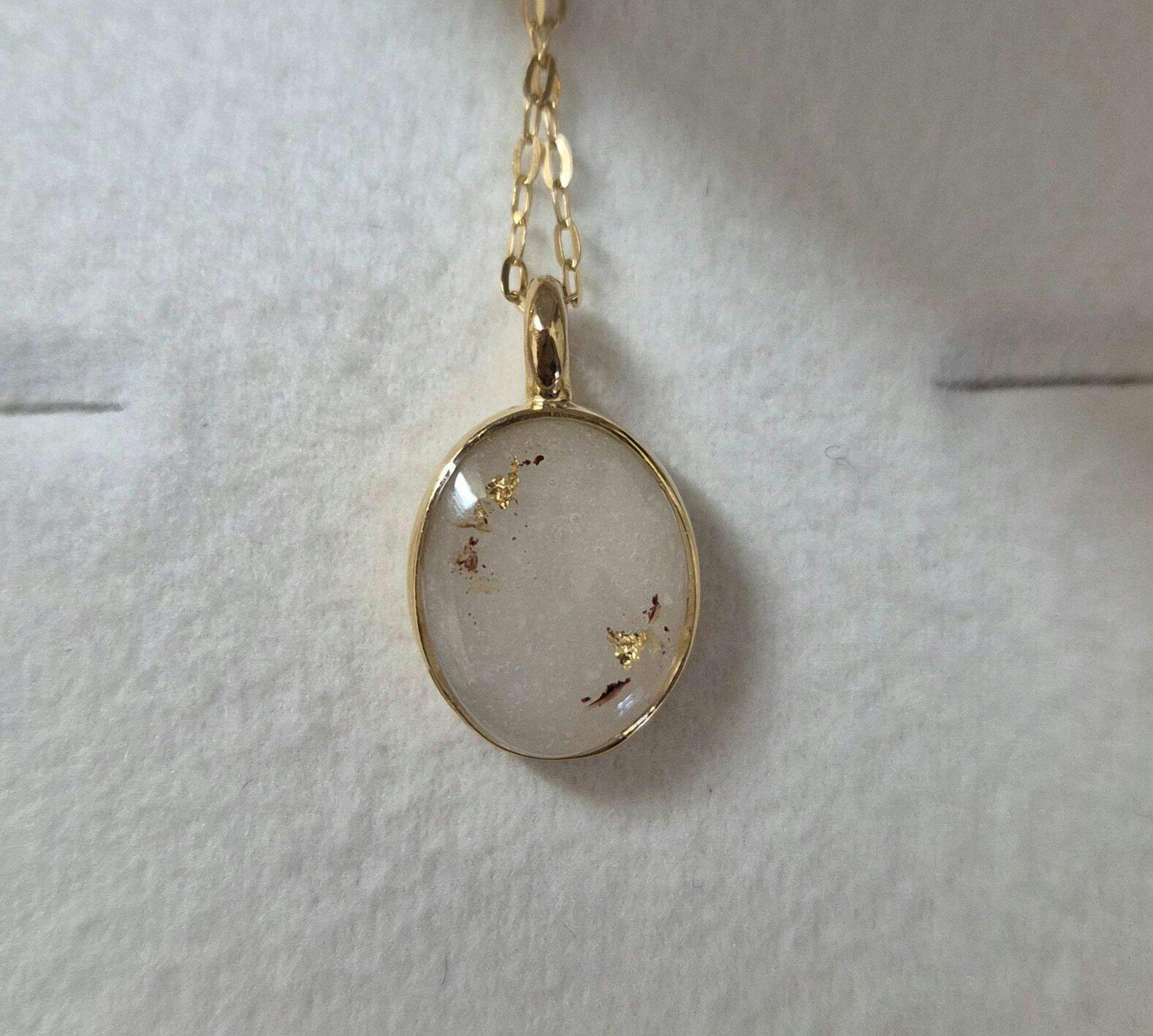 大好きな祖母のネックレスのチェーンとベビの臍の緒ジュエリーを一緒に身につけていたくて、作っていただいてます。